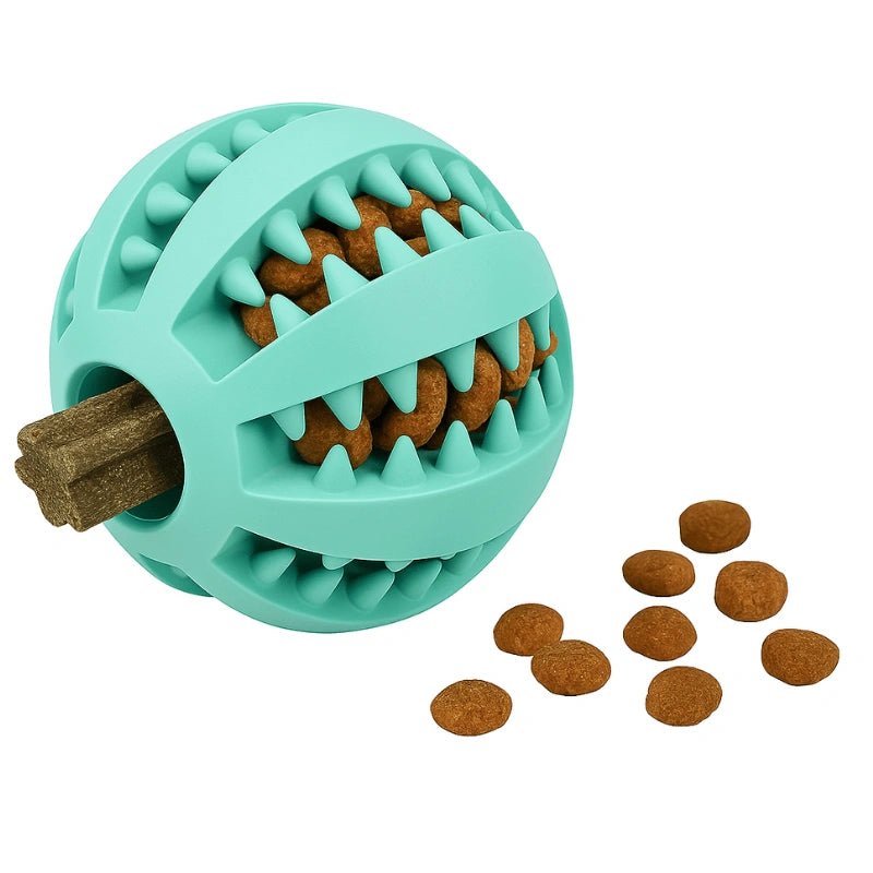Whether it’s fetch in the yard or snack-time stimulation indoors, the Interactive Chew Rubber Ball is the toy that makes every moment better.