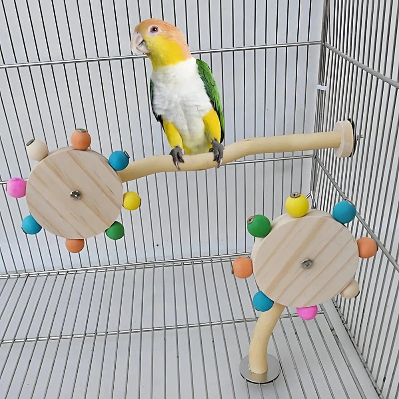 Crafted from safe, chewable wood and fitted with vibrant spinning beads, this windmill style perch stimulates curiosity, supports beak activity, and helps relieve stress in small birds like lovebirds, parakeets, cockatiels, and conures.